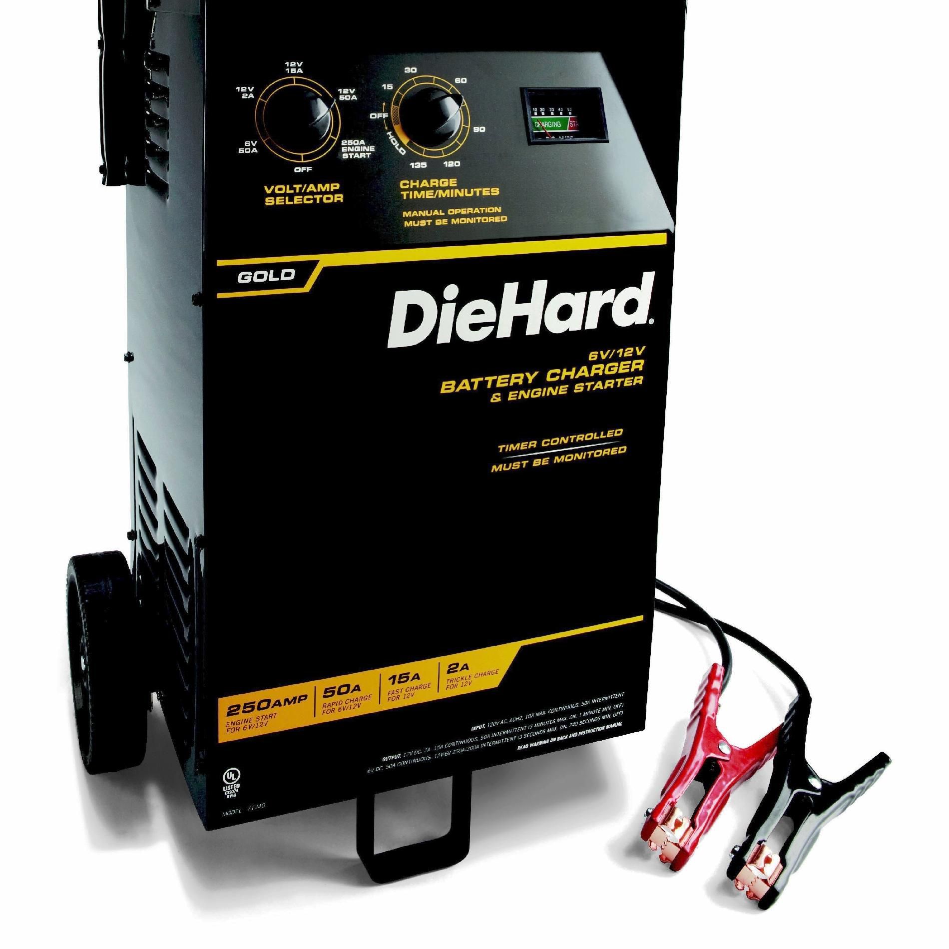Diehard Gold Wheeled Battery Charger With Timer Control Engine Starter